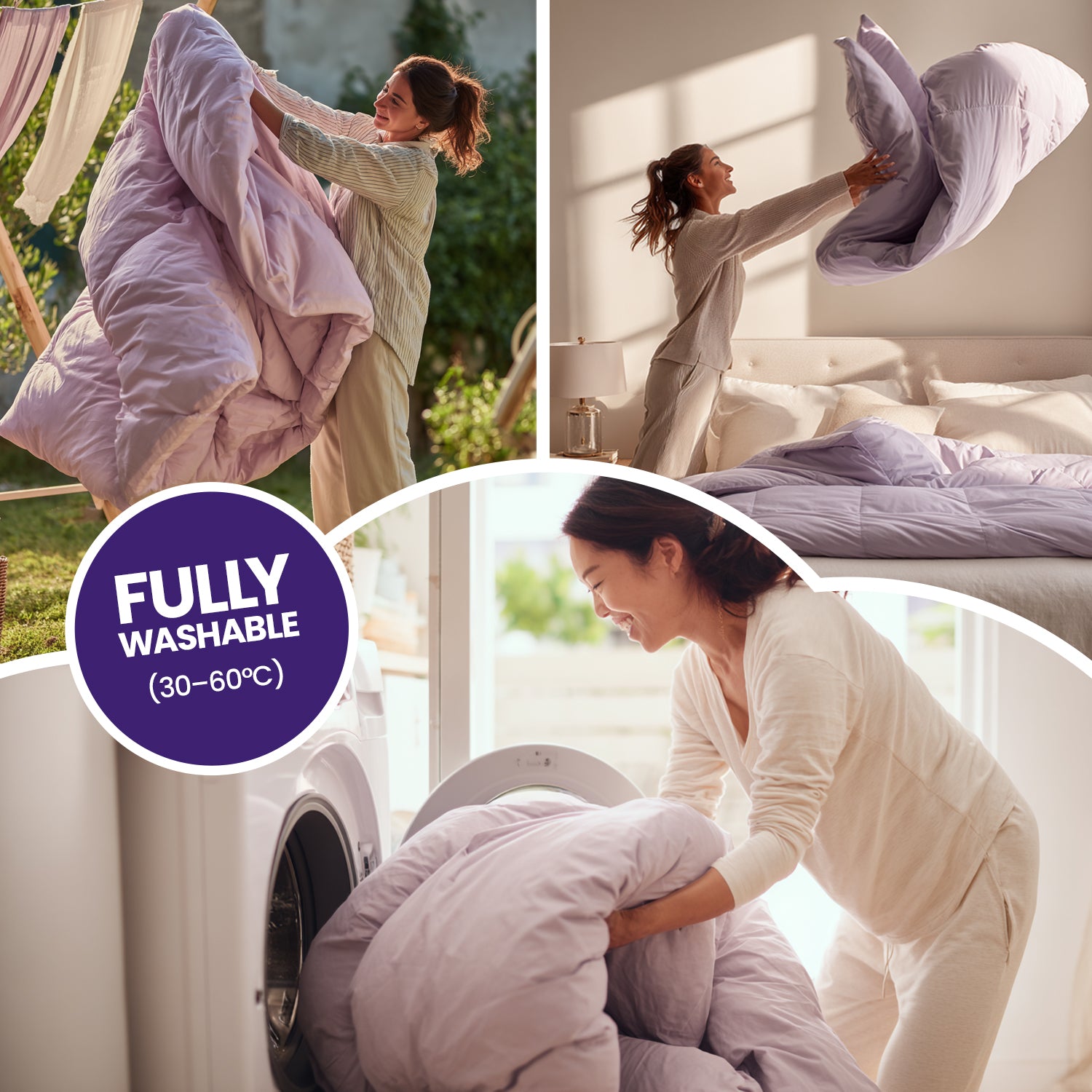 Made from soft, breathable microfiber with a luxurious look & feel. Designed to make your bed in seconds – no cover, no hassle. Fully washable, hypoallergenic, and suitable for all seasons.
